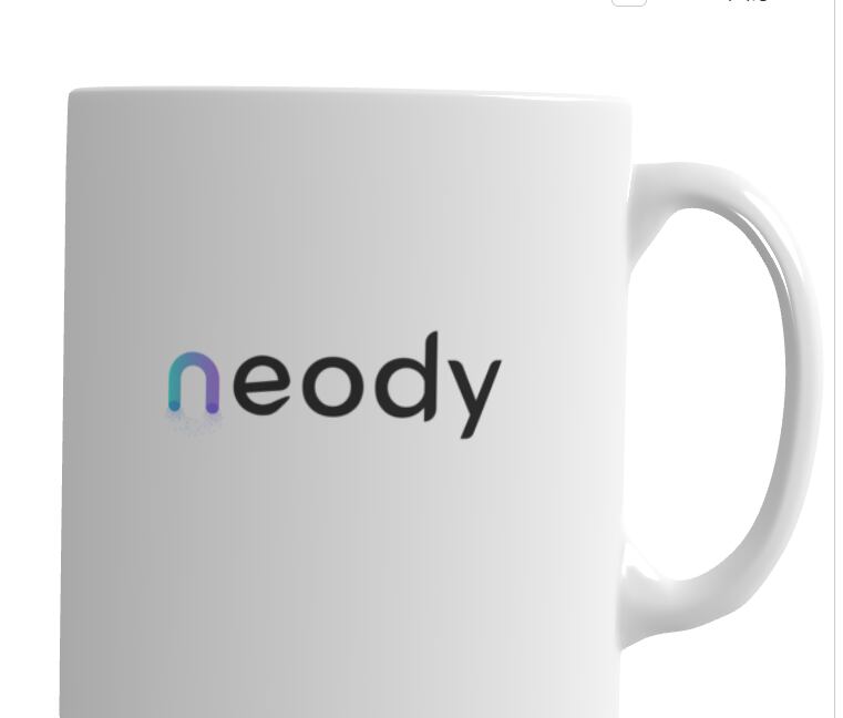 Neodyロゴのマグカップです。左右にNeodyのロゴが印刷されています。